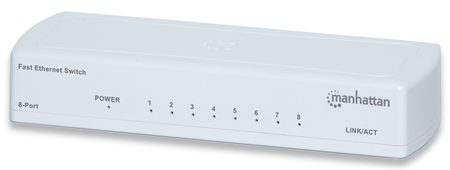Manhattan 8-Port Fast Ethernet Switch – Plastic Case, Desktop, Retail Box, 1 year Limited Warranty